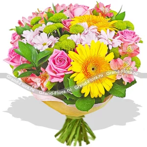 Мечты о лете - букет из кустовой хризантемы и гербер