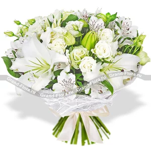 Нежнее нежного - букет-новинка из роз, альстромерий и калл