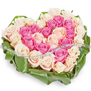 Мое сокровище - композиция на оазисе в виде сердца из роз