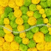ЛЮКС: хризантема кустовая желтая (сантини) - 25 шт., хризантема кустовая зеленая - 12 шт., оазис.