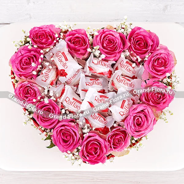 Твоя улыбка – сердце из розовых роз и раффаэлло